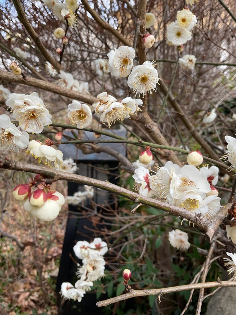 都下では遅い八王子の梅花もこの暖かさに満開になり花弁が落ちそうです。